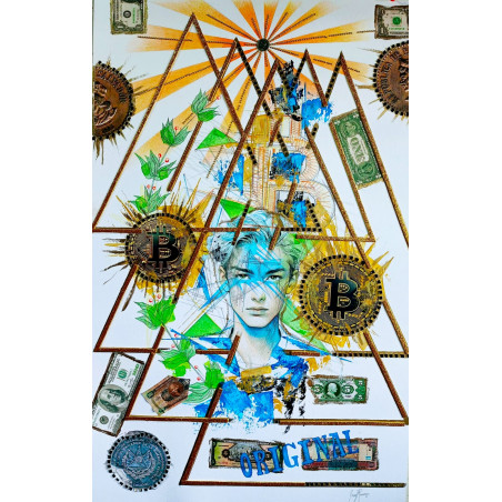 Es una obra collage que refleja las distintas etapas monetarias vigentes y no vigentes de El Salvador. El centro de la obra está conformado por un joven, una parte del escudo nacional de El Salvador, unos rayos de sol y una moneda verdadera del colón salvadoreño.