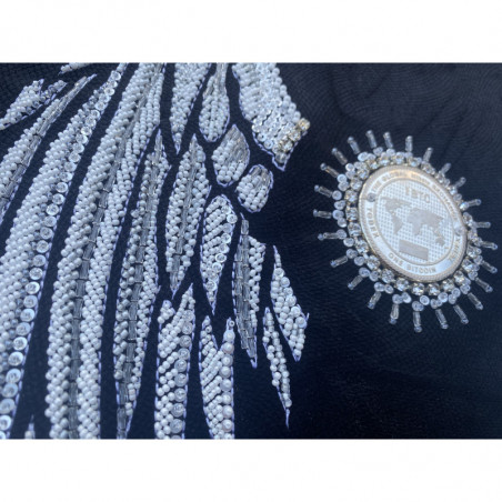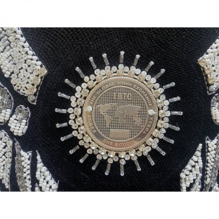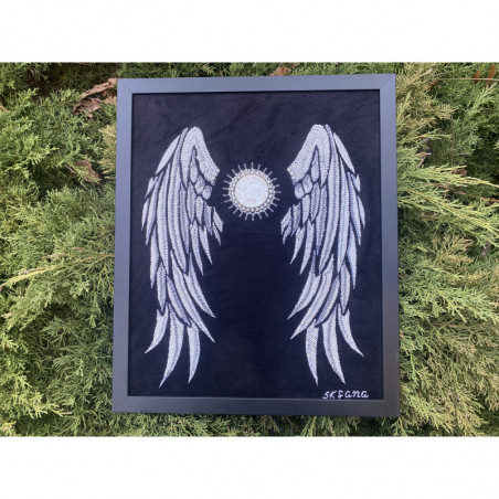 Title: Painting BitWings Materials: -fabric -beads Preciosa -threads Tytan 100 for bead embroidery -needles for beadwork -Swarovski stones -Rhinestones-Handmade decorative frame -TGBEX physical coin - 1 bitcoin (UNLOADED & UNNUMBERED)