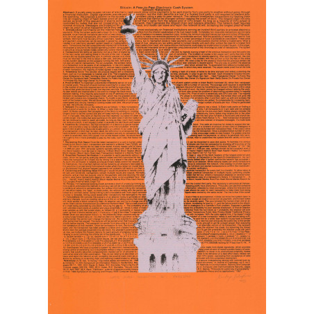 Freedom, a fundamental concept at the core of Bitcoin. With the White Paper as our rock-solid foundation for this artwork and for the groundbreaking society we're shaping and placed atop it, the iconic symbol of freedom: the Statue of Liberty herself.