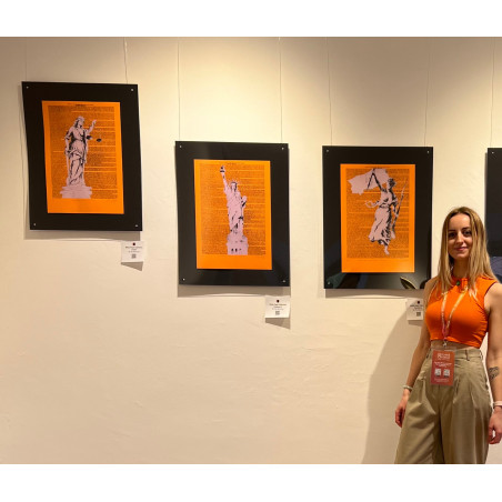The 21-print White Paper Collection captures the essence of "came for NgU, stayed for the Revolution," featuring the iconic Liberty Leading the People symbol. Bitcoin supports our peaceful fight for rights, showcasing powerful women embodying Freedom, Justice, and Revolution values.