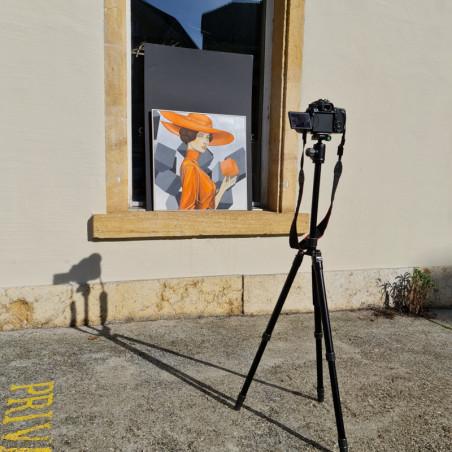 The painting "Lady Block Jane" is the impressive opening piece of the 'La Femme Orange' series by the artist Lady Block Jane.