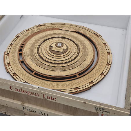 On 3 October 2025, Edition 2 was personally inspected and authenticated by the artist, FractalEncrypt, who added engraved Bitcoin symbols and replaced the halving-equation laminate after testing thirteen potential variations. The final selection offered sharper definition and enriched coloration. The artist noted that he rarely has the opportunity to revisit earlier works, describing this refinement as a reminder that “a work is never truly complete.”