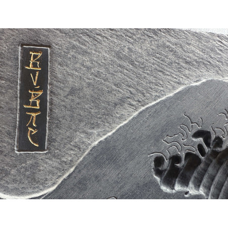 I carved this relief to capture the steadfast calm I feel as a Bitcoiner, no matter how turbulent the fiat storm. Inspired by Hokusai’s iconic "The Great Wave off Kanagawa," this piece is my attempt to bring that famous wave to life through the rugged beauty of reclaimed slate. This particular stone is a joy to work with and has a beautiful blue-grey color.