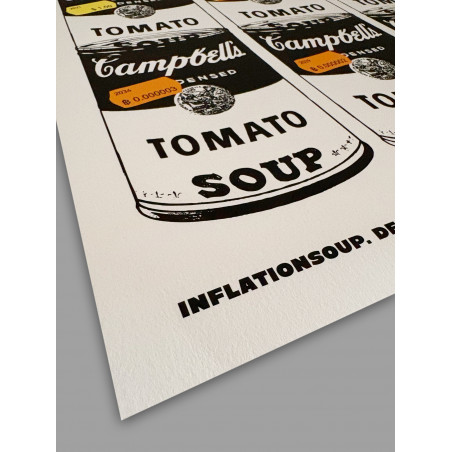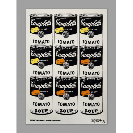 ZETRA's "INFLATIONSOUP. DEFLATIONSOUP." shows the famous Campbell's soup and it's price increase in FIAT terms and the expected price decrease in BITCOIN terms. Everything is going to zero against BTC. Basically free Tomato Soup for everyone! Edition of 3.