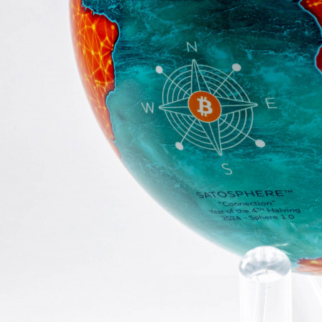 The Satosphere 1.0 Bitcoin globe is a first-of-its-kind, unique Bitcoin art decor globe that represents not only the physical world, but also the digital world. It’s a daily reminder of the change we are part of and a Bitcoin world we’re building.