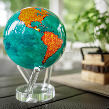 Each globe has a transparent outer shell made from carefully selected, high-quality acrylic. This external layer remains stationary while an internal one spins using advanced magnets for torque and solar cells to power the movement.